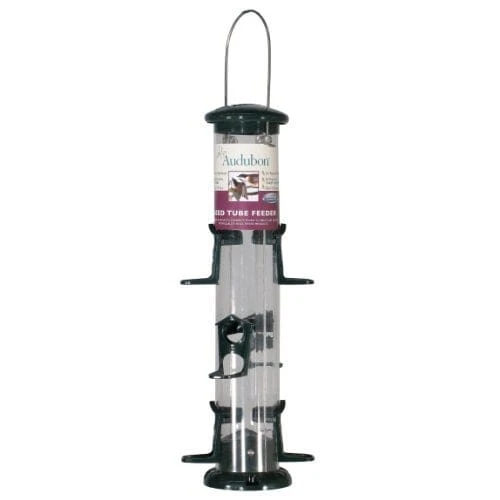 • Durable clear plastic tube holds seed & top base perches and feeding stations are green plastic