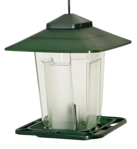 ⢠Contemporary square style featuring large roof overhang and extra seed capacity.