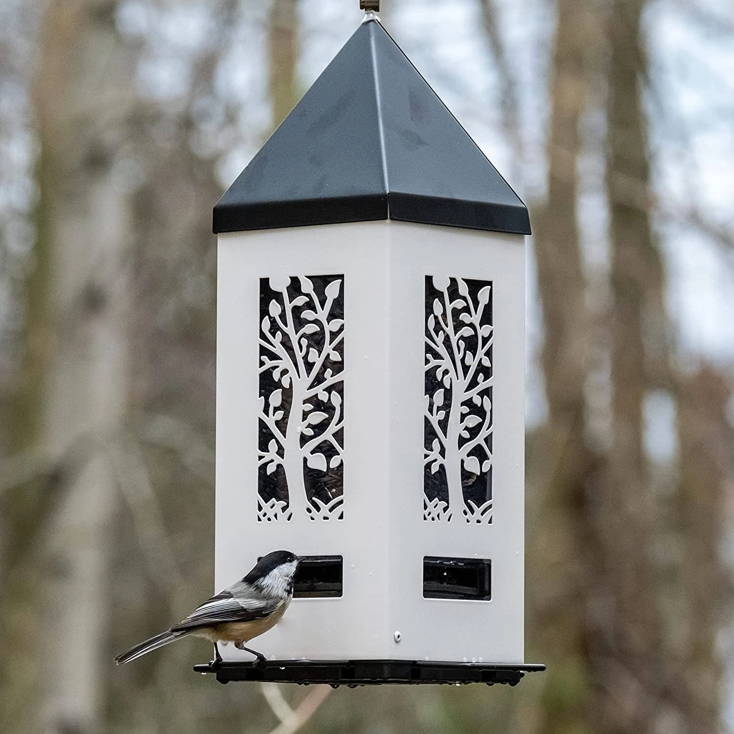 • Perches and seed ports on each side for better bird viewing
