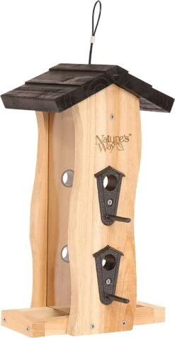 Nature’s Way Vertical Wave Wooden Hopper Wild Bird Feeder – Cedar – 2 Qt Cap